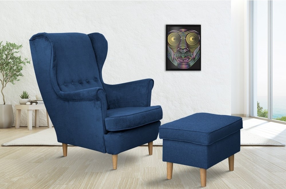 FOTEL SKANDYNAWSKI ANGEL USZAK (WYBIERZ TKANINĘ I KOLOR NÓG)