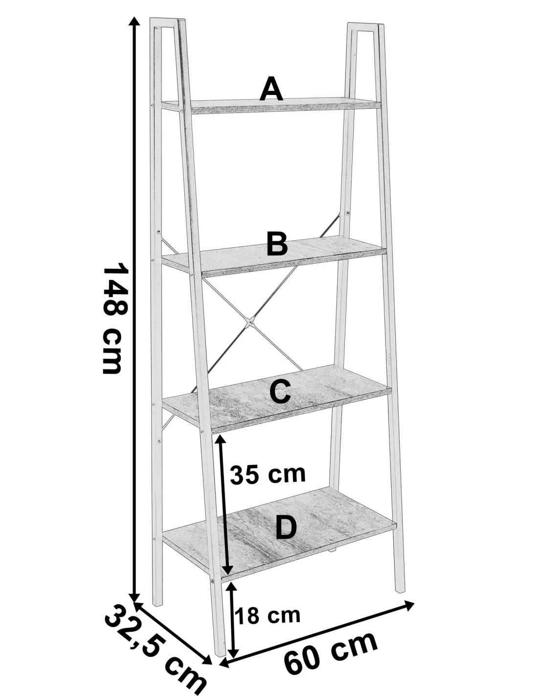 REGAŁ LOFTOWY TONDER 4 PÓŁKI DĄB POSTARZANY VINTAGE