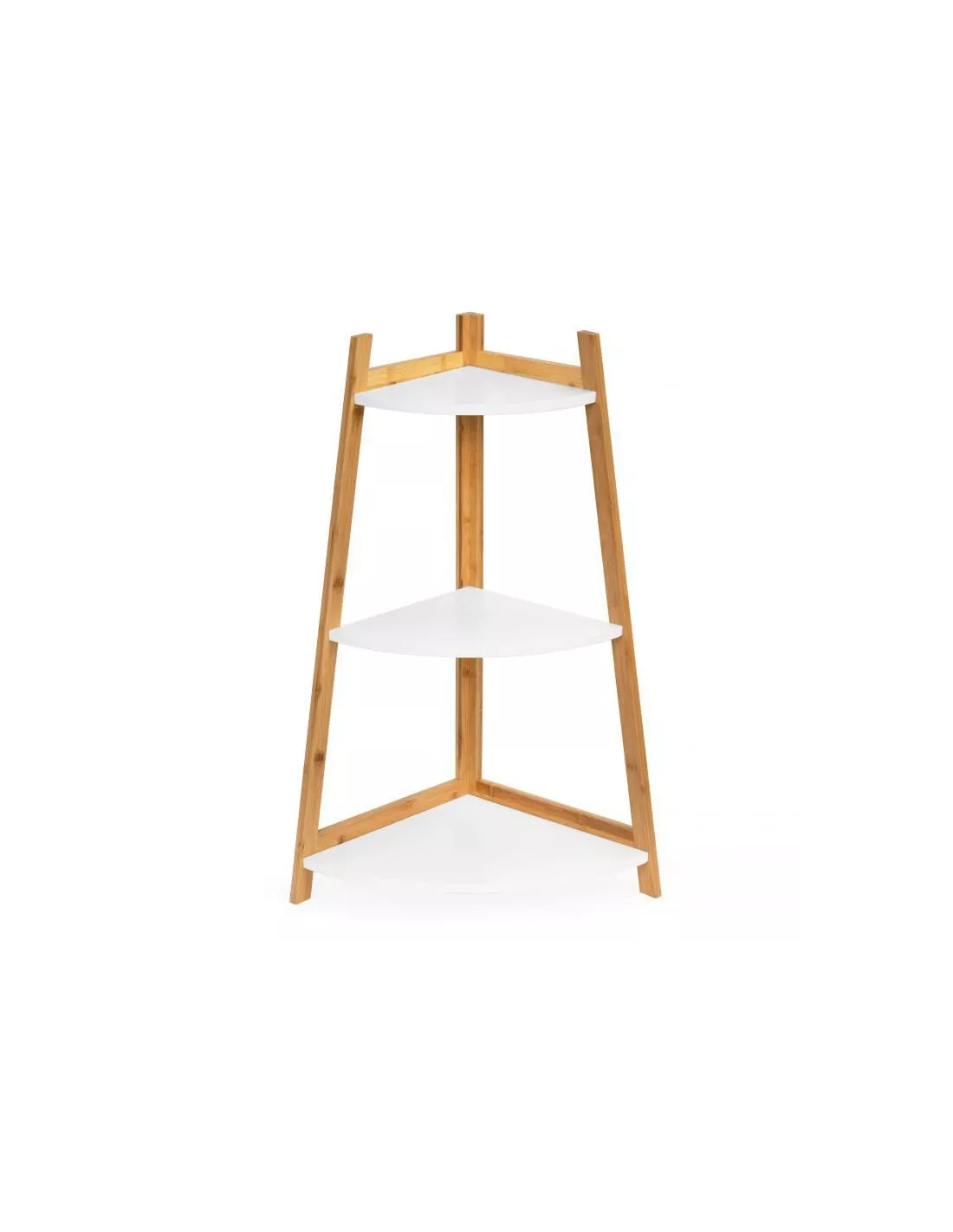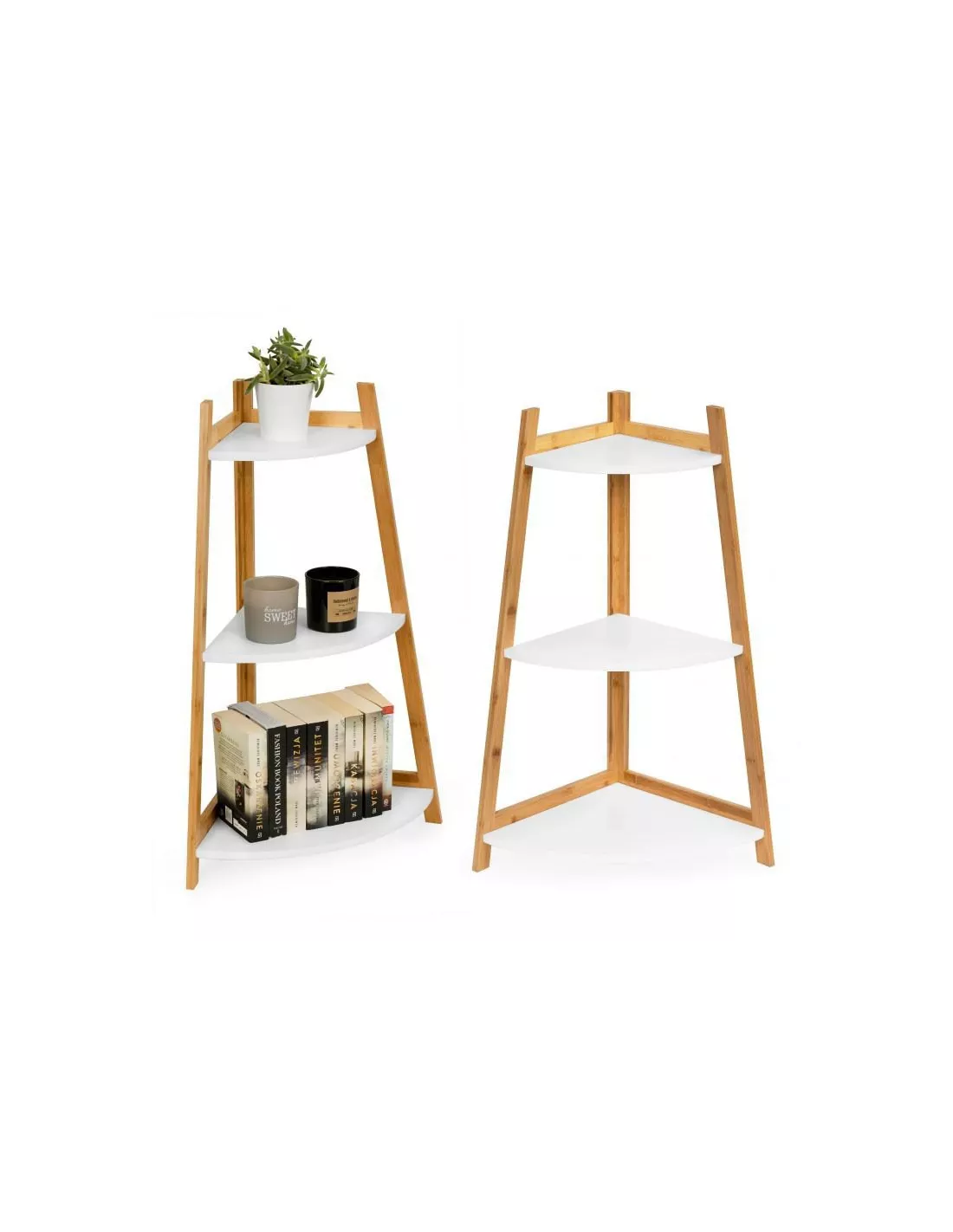 Szafka narożna to idealna propozycja do aranżacji wielu domowych pomieszczeń. Świetnie sprawdza się w sypialni, ustawiona tuż obok łóżka, jako regał na książki w salonie, jako stolik lub konsolka w przedpokoju... Mebel ten zastosowań może mieć tyle ile masz pomysłów! Trzy funkcjonale półeczki, łączone drewnianym stelażem z drewna bambusowego - połączenie idealne, które wzbogaci każde modne wnętrze o nieprzeładowanej stylistyce. Szafka z półkami o różnej głębokości idealnie wpisze się w każdy róg.