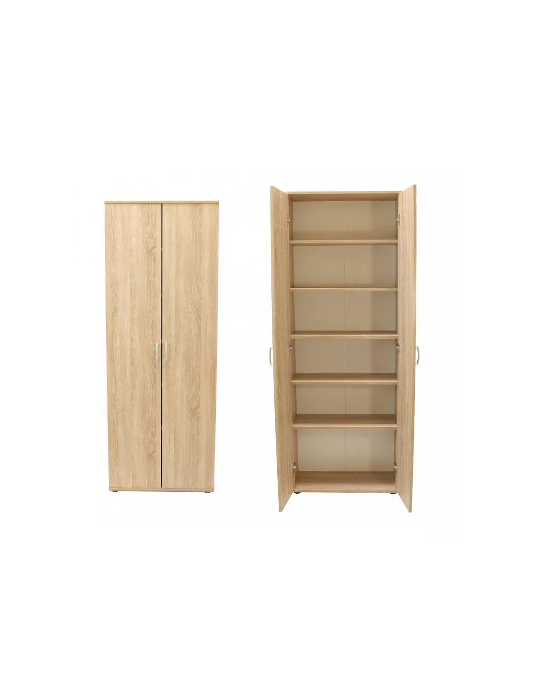 Model RS-70 2D to idealna propozycja do aranżacji wielu przestrzeni. Niezwykle pojemny i funkcjonalny, posiada 6 głębokich półek, ukrytych za dwoma dużymi frontami. W salonie czy sypialni może służyć do odłożenia ubrań, książek, kocy, pościeli i innych przedmiotów, które na co dzień powinny być schowane. W pokoju dziecka z pewnością pomieści nie tylko ubranka ale i zabawki. W biurze czy gabinecie pomieści wiele segregatorów i dokumentów. Piękny kolor dąb sonoma z uwidocznionymi słojami i przebiciami, charakterystycznymi dla drewna - świetnie wpasuje się w większość pomieszczeń podobnie jak i klasyczna modna biel.