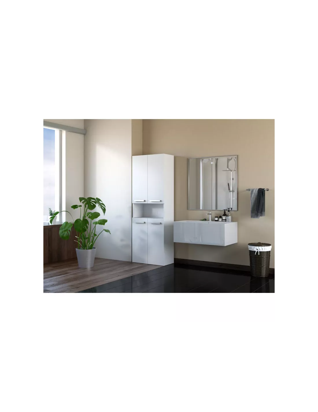 Uchwyty w kolorze srebrnym - znacznie ułatwią otwieranie frontów. Płyta laminowana użyta do produkcji mebla dodatkowo zabezpieczona jest tworzywem PVC - co ma duże znaczenie w przypadku użytkowania mebli łazienkowych narażonych na wilgoć. Zabudowany kosz na pranie i pojemne półki pozwalają na oszczędzenie miejsca, czasu i pracy.