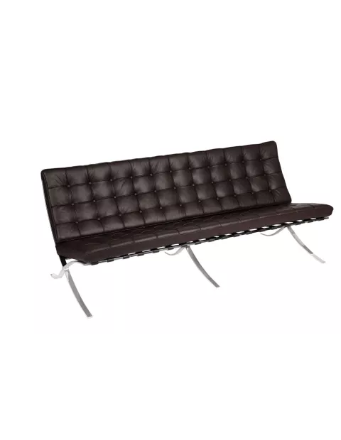 Sofa BA3 to dwuosobowa sofa, będąca nieco odświeżoną wersją projektu BARCELONA z 1929r. Światowy design w zasięgu Twojej ręki? A czemu nie?! Ta sofa to powiew prestiżu i luksusu, który idealnie odnajdzie się we wszystkich salonach w stylu glamour, nowoczesnych biurach, ekskluzywnych sklepach i showroomach.... Tapicerkę wykonano z najlepszej jakościowo skóry naturalnej w 4 kolorach do wyboru. Liczne pikowania i guziki nadają jej jedynego w swoim rodzaju designu. Warto także wspomnieć o komforcie siedzenia, z racji miękkiego siedziska i wyprofilowanego oparcia. Całość wspiera się na charakterystycznym stelażu w formie litery "X", który dzięki zabiegowi chromowania - idealnie odbija światło. Sofa BA3 to jedyny w swoim rodzaju design, rozpoznawany na całym świecie jako synonim najlepszych materiałów i jakości wykonania.