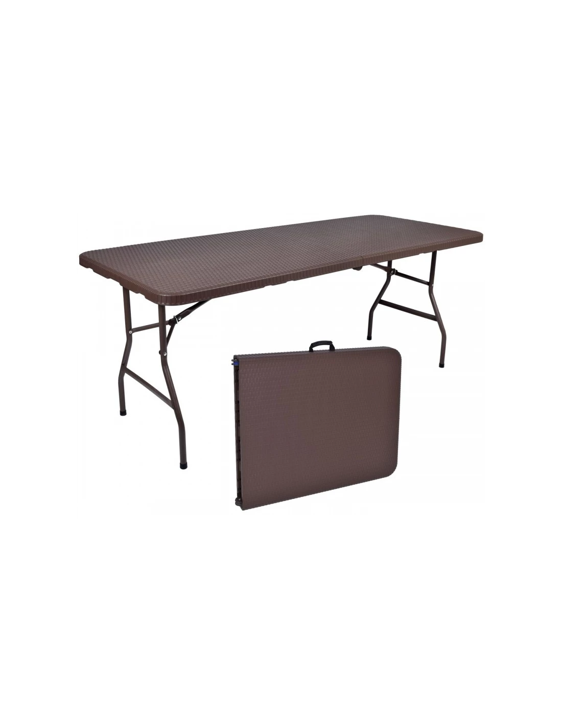 BANKIETOWY SKŁADANY RATTAN STÓŁ CATERINGOWY 180 CM BRĄZ