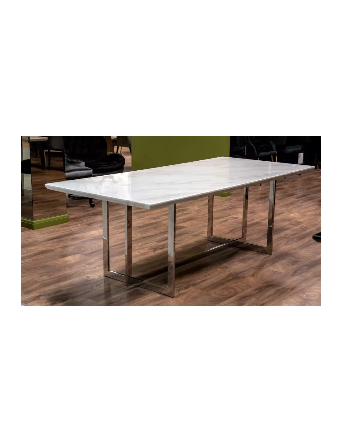 Patrząc na model Marble można śmiało przyznać, że połączenie srebra i marmuru jeszcze nigdy nie wyglądało tak dobrze! Stół prezentuje się naprawdę okazale i z pewnością przyciągnie wszystkie spojrzenia, będąc istotnym elementem nie tylko użytkowym ale także wystroju.