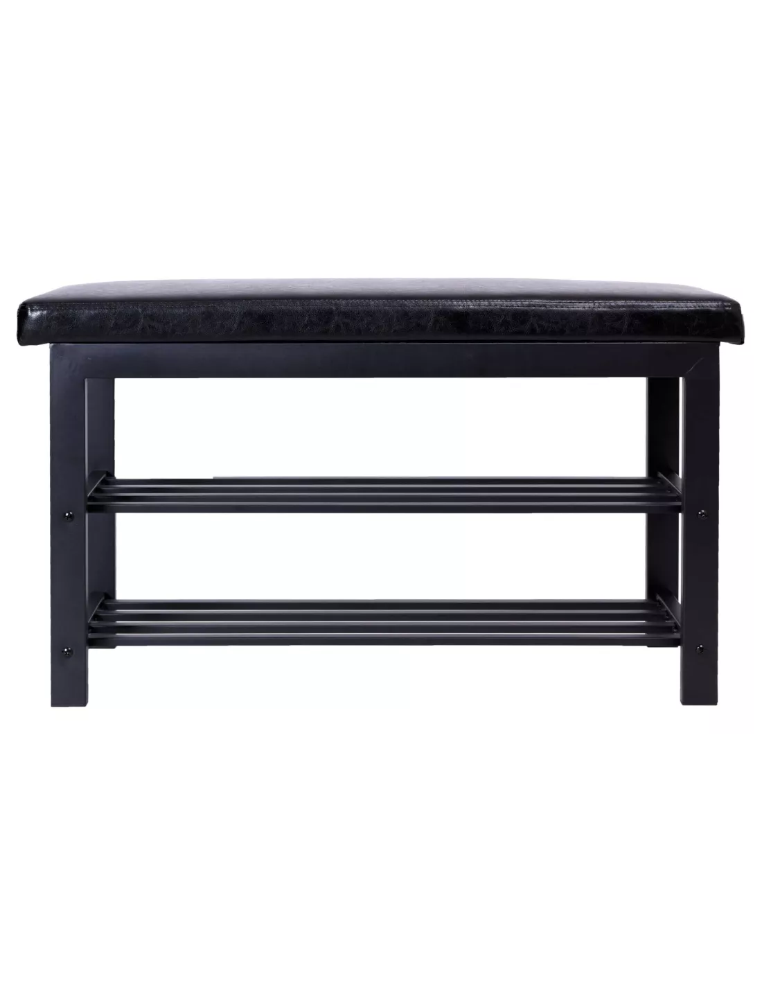 Ławka Dorcas to nowoczesna altnernatywa dla mebli do przedpokoju. Wyposażona jest w miękkie, tapicerowane czarną eko-skórą siedzisko oraz dwie dolne półki na obuwie. Dzięki połączeniu dwóch mebli w 1 - oszczędzasz sporo miejsca. Donore idealnie sprawdzi się w każdym modnym przedpokoju, nowoczesnej sypialni czy salonie. Wygodne siedzisko przyda się podczas zakładania butów a półki, pomogą uporządkować przedpokój.