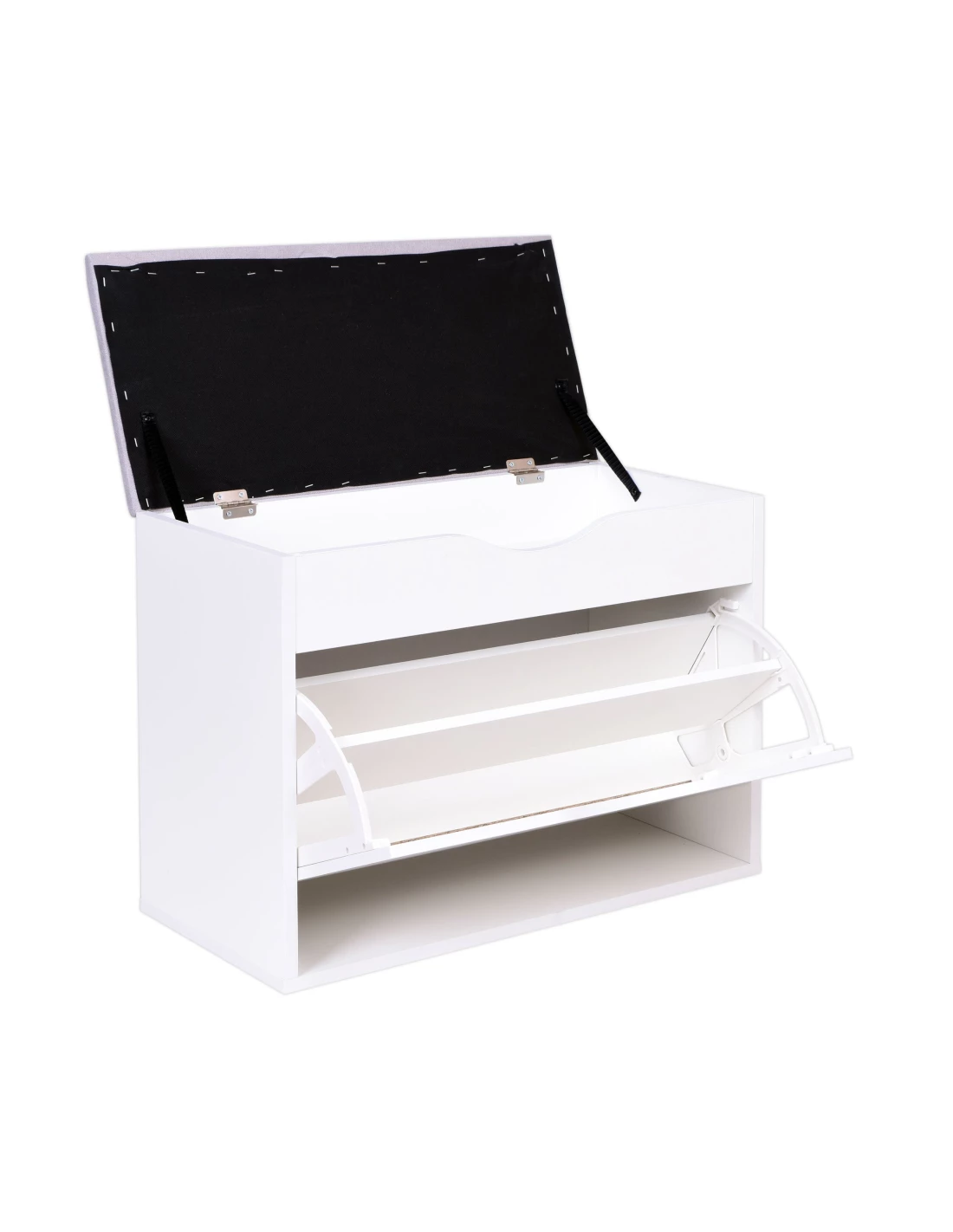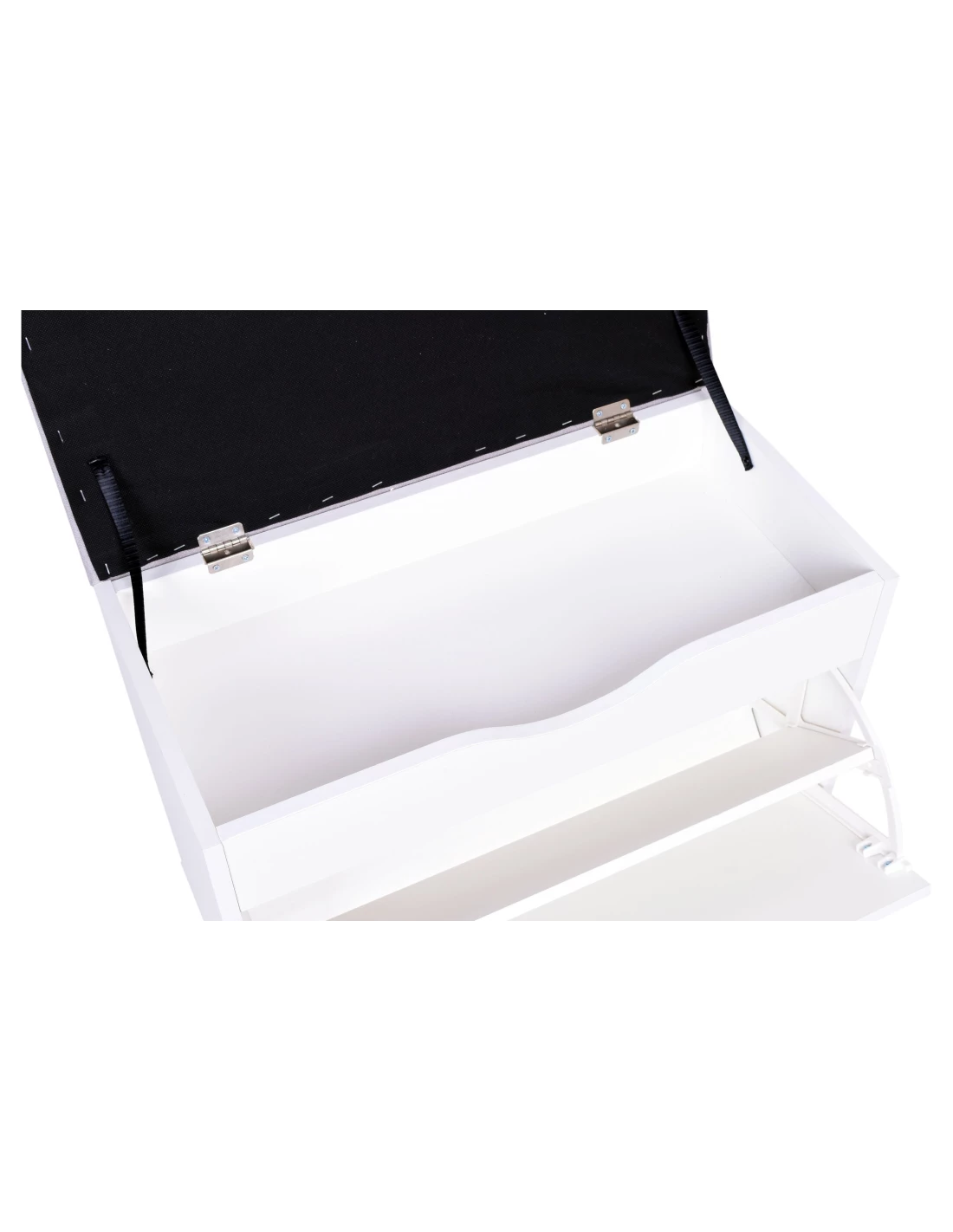 SZAFKA NA BUTY BIAŁA Z SIEDZISKIEM SZARYM TKANINA ADRIA