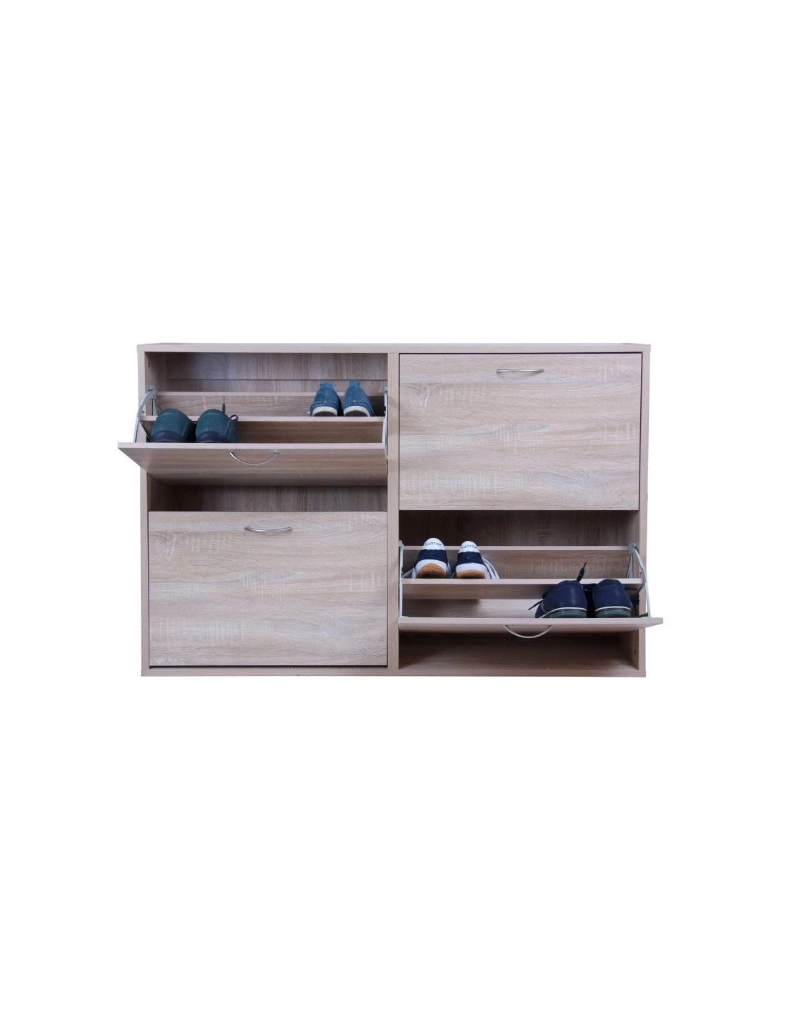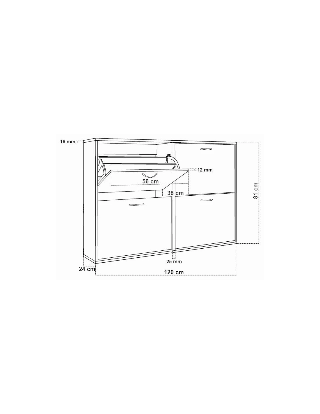 Szafka na buty Laura to idealny mebel do każdego przedpokoju. Dzięki bogatej modnej kolorystyce i ponadczasowemu designowi idealnie wpasuje się w każde wnętrze. Szafka na buty posiada 4 podwójne, uchylane szuflady, w których zmieści się nawet 20 par obuwia! Szafka na buty Laura to mebel, który pomoże uporządkować Twój przedpokój, zaoszczędzając przy tym sporo miejsca.