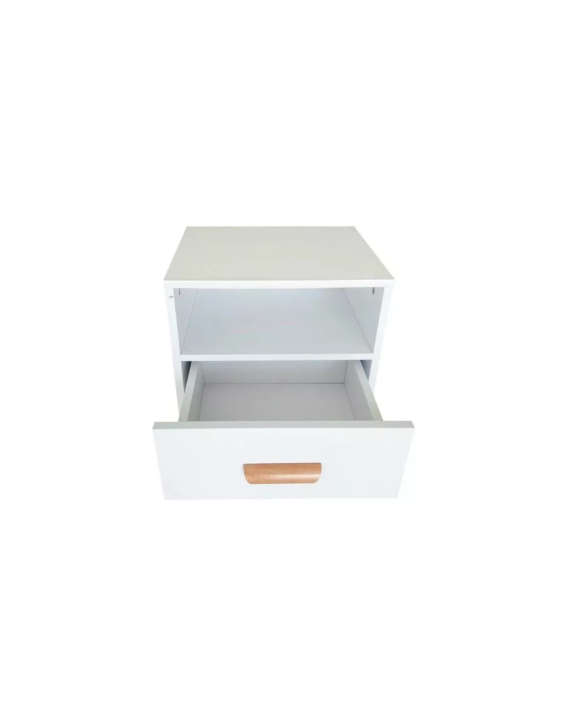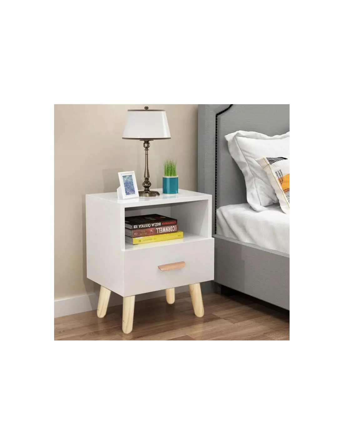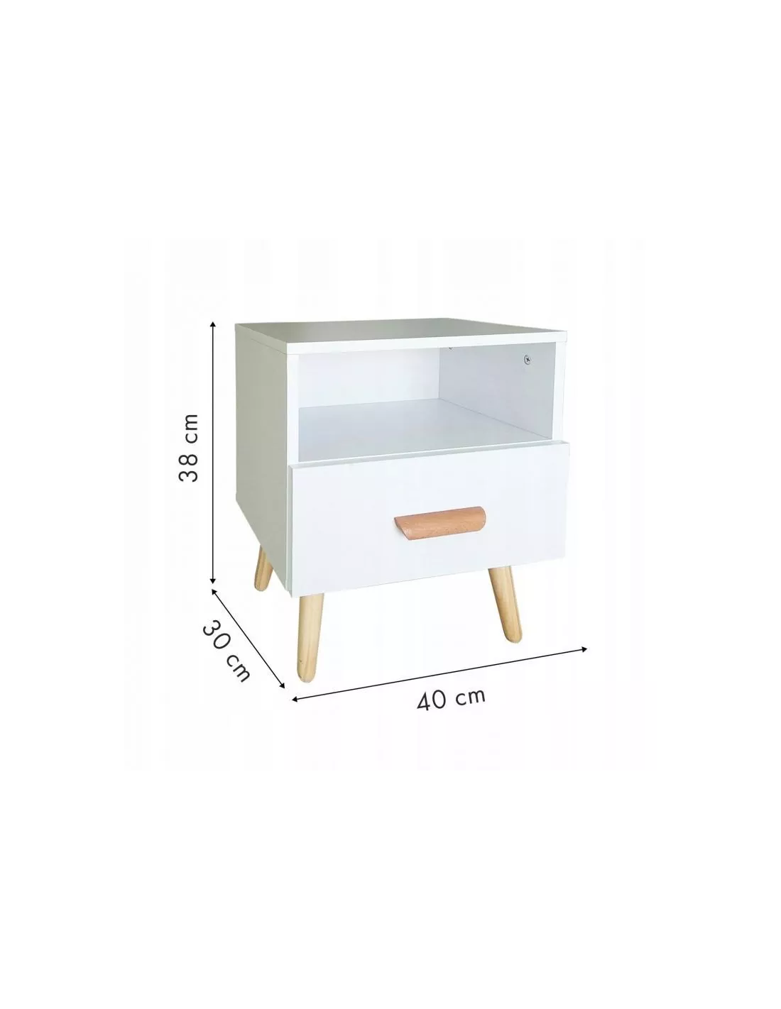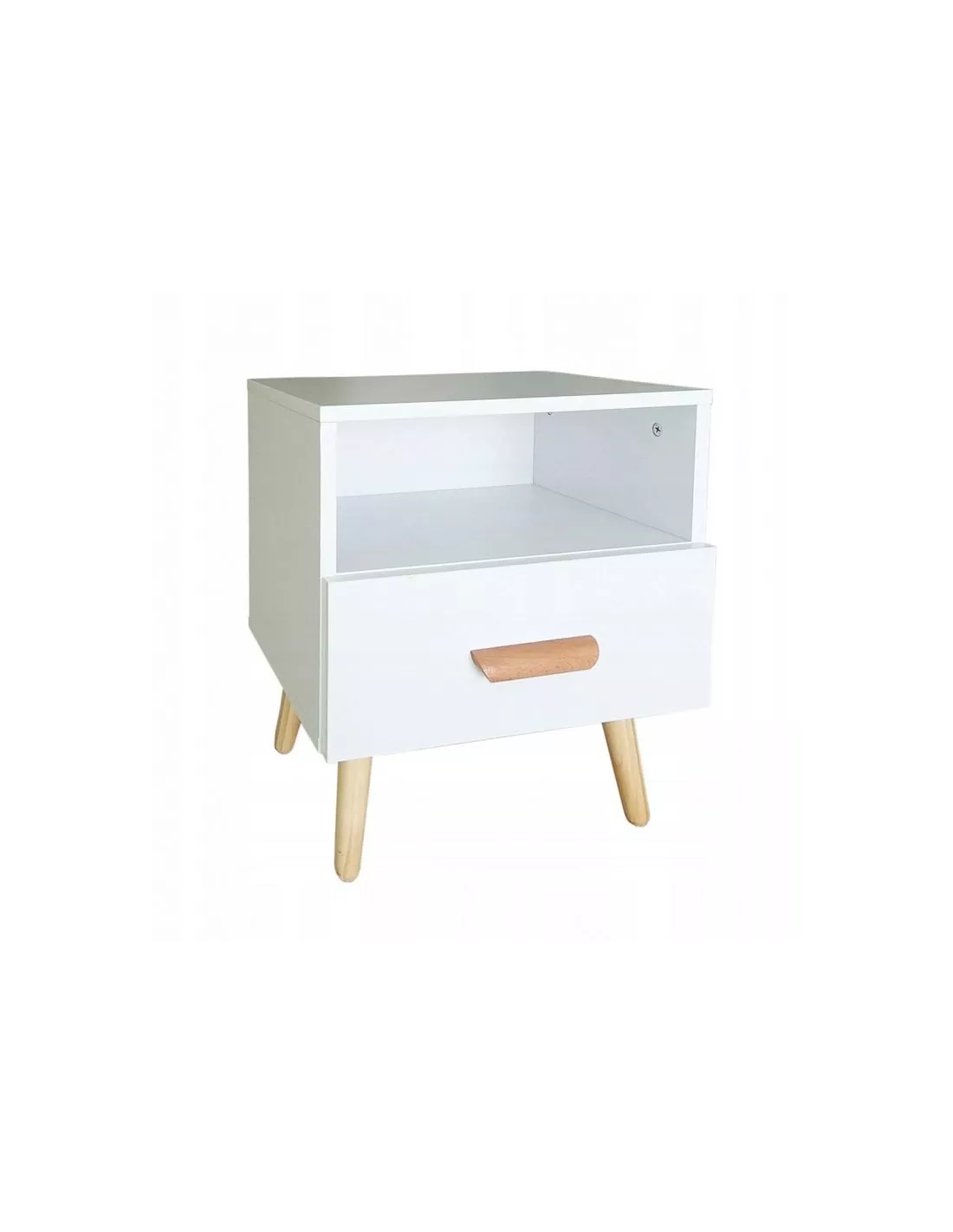 Szafka nocna to idealna propozycja do aranżacji każdej modnej sypialni, zwłaszcza zaś tej urządzonej w stylu skandynawskim, gdzie połączenie naturalnego drewna i bieli, zawsze było stawiane na pierwszym miejscu. Ten funkcjonalny stolik nocny to jednak nie tylko design ale także funkcjonalność. Wyposażony w otwartą półkę, szufladę z uchwytem i blat - pozwala nie tylko na odłożenie książki, pilotów do tv, czy drobnych przedmiotów ale także na ustawienie na nim lamki nocnej. Właściwie ciężko wyobrazić sobie nowoczesną, funkcjonalną sypialnię bez tego stolika nocnego.
