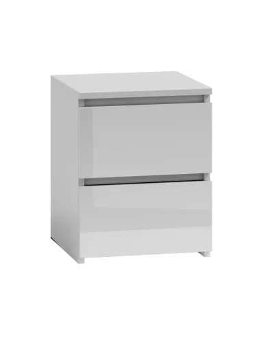 Szafka nocna z bezuchwytowymi frontami, lakierowanymi na wysoki połysk to świetna propozycja do niemalże każdej sypialni. Szafka niezwykle solidna konstrukcja wykonana z płyty laminowanej o grubości 18 mm z dwoma szufladkami na rolkowych prowadnicach. Polski producent. Ten filigranowy mebel pomoże zapanować nad przedmiotami, posłuży jako stolik na lampkę lub książkę i będzie idealnym uzupełnieniem wystroju sypialnianego wnętrza. Tą bezuchwytową szafkę nocną można z powodzeniem łączyć z innymi meblami tego typu (komody od 3 do 10 szuflad, dostępne w naszej ofercie).