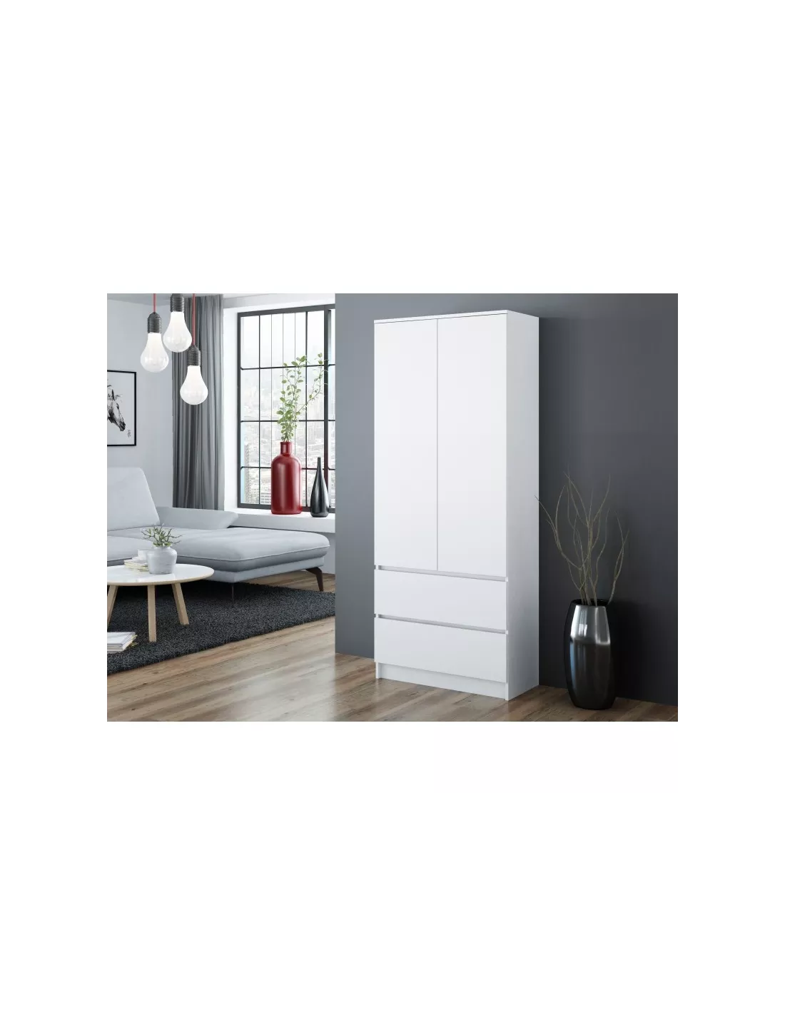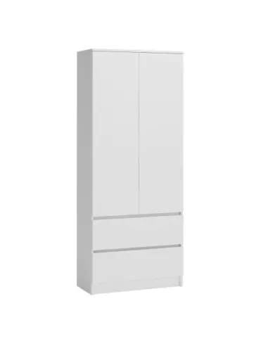 Szafa to rozwiązanie wręcz idealne, sprawdzające się w każdego rodzaju pomieszczeniach. Świetnie spełnia swoją rolę zarówno w sypialni, przedpokoju czy biurze. Pozwala na utrzymanie dobrze zorganizowanej odzieży, a jednocześnie jej prosta forma jest niezwykle wdzięczna i nierzadko pełni ozdobną funkcję. Niniejsza szafa - garderoba SS-90 w białym macie posiada drążek, na którym z powodzeniem możesz zawiesić wszystkie swoje ubrania oraz 5 funkcjonalnych półek na odzież, jak i na dokumenty. Dodatkowo, szafa została wyposażona w 2 wysuwane szuflady przystosowane do przechowywania przedmiotów codziennego użytku. Model wykonany z materiałów najwyższej jakości, włączając w to płytę laminowaną 16mm, której krawędzie zostały oklejone ABS. Dzięki temu mebel jest odporny na wilgoć oraz uszkodzenia mechaniczne. Szuflady zostały wyposażone w prowadnice rolkowe, zapewniające bezpieczne użytkowanie, a bezuchwytowe fronty pozwalają na utrzymanie komfortu użytkowania na najwyższym poziomie.