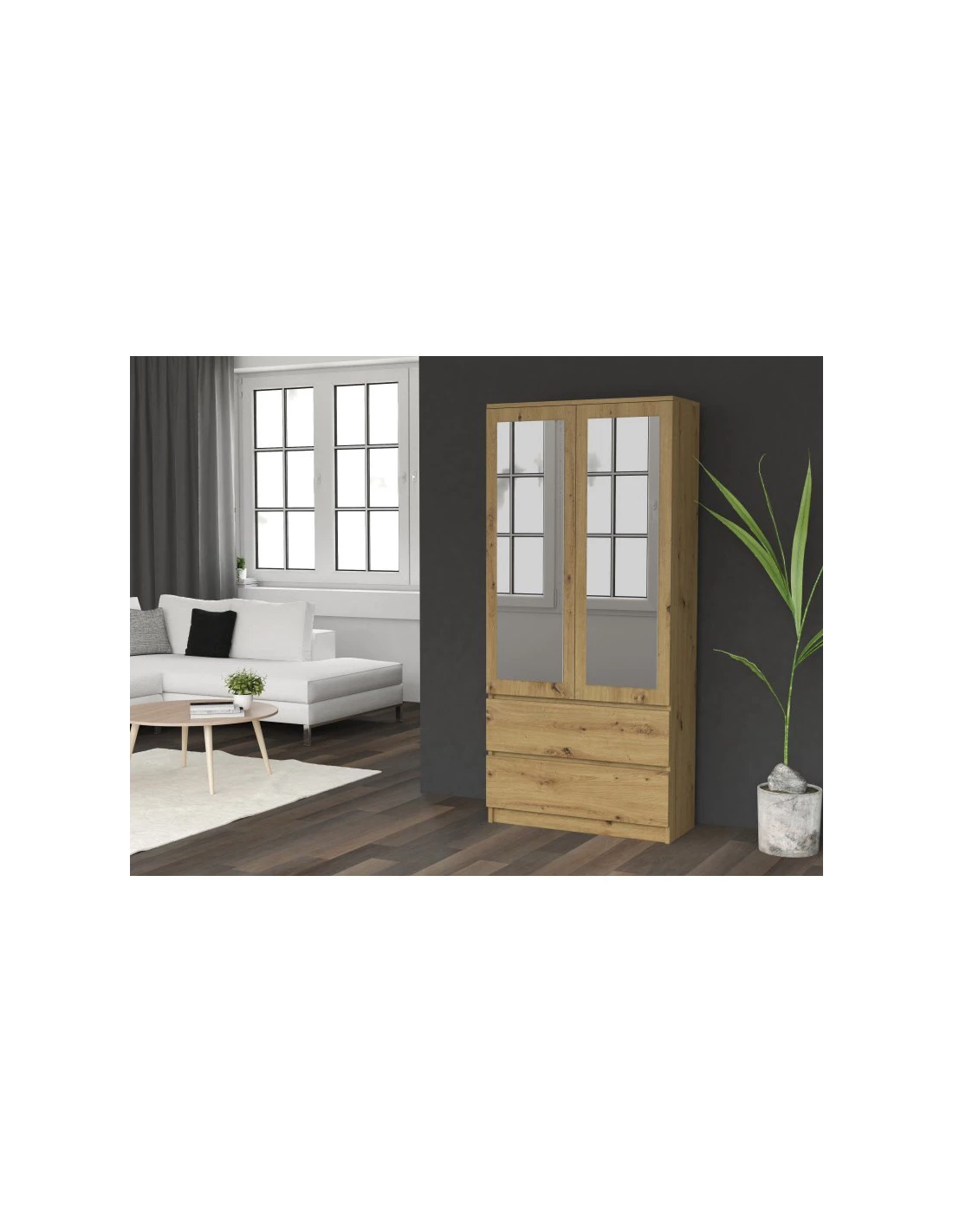 SZAFA Z PODWÓJNYM LUSTREM GARDEROBA SS-90 DĄB ARTISAN