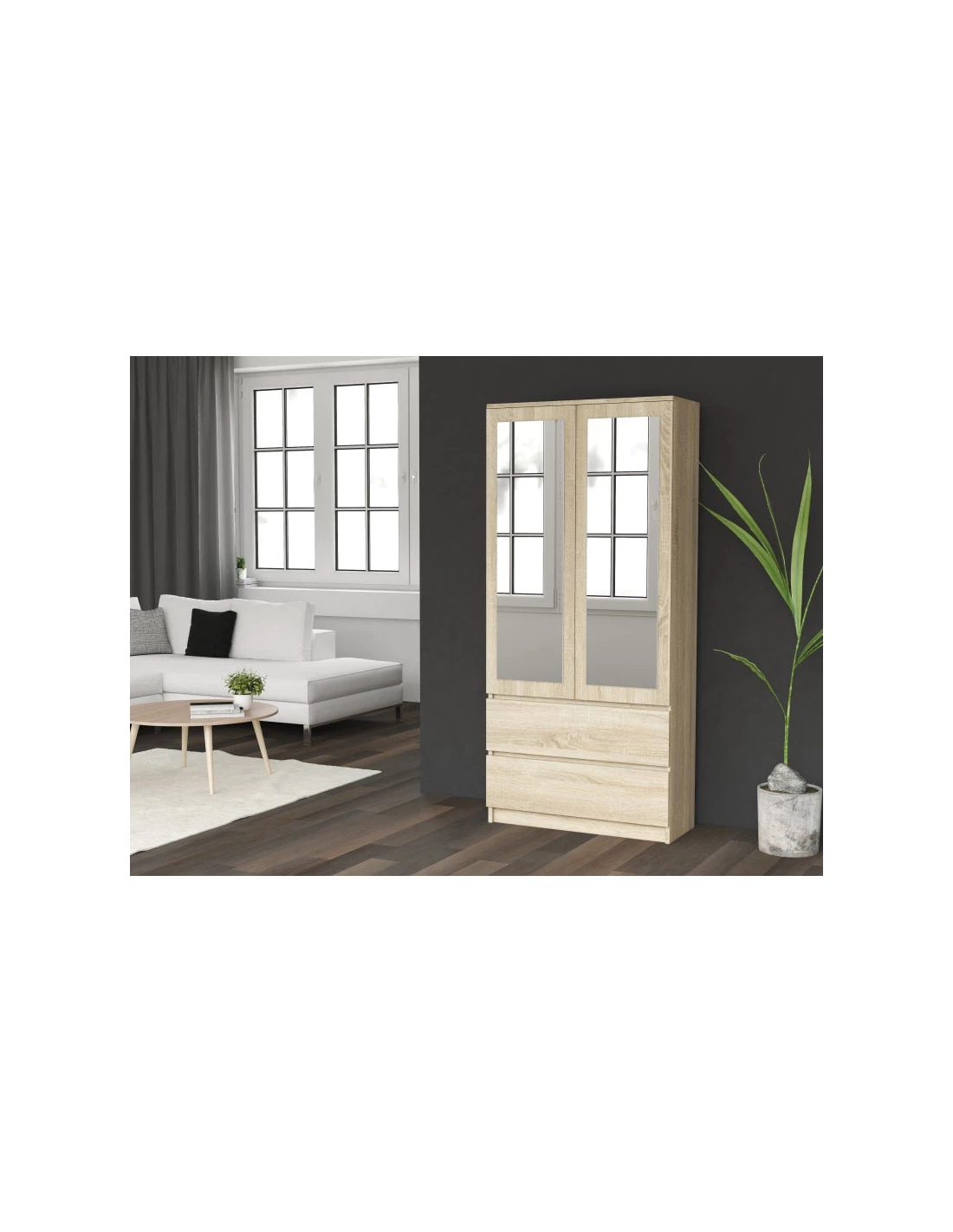 SZAFA Z PODWÓJNYM LUSTREM GARDEROBA SS-90 DĄB SONOMA