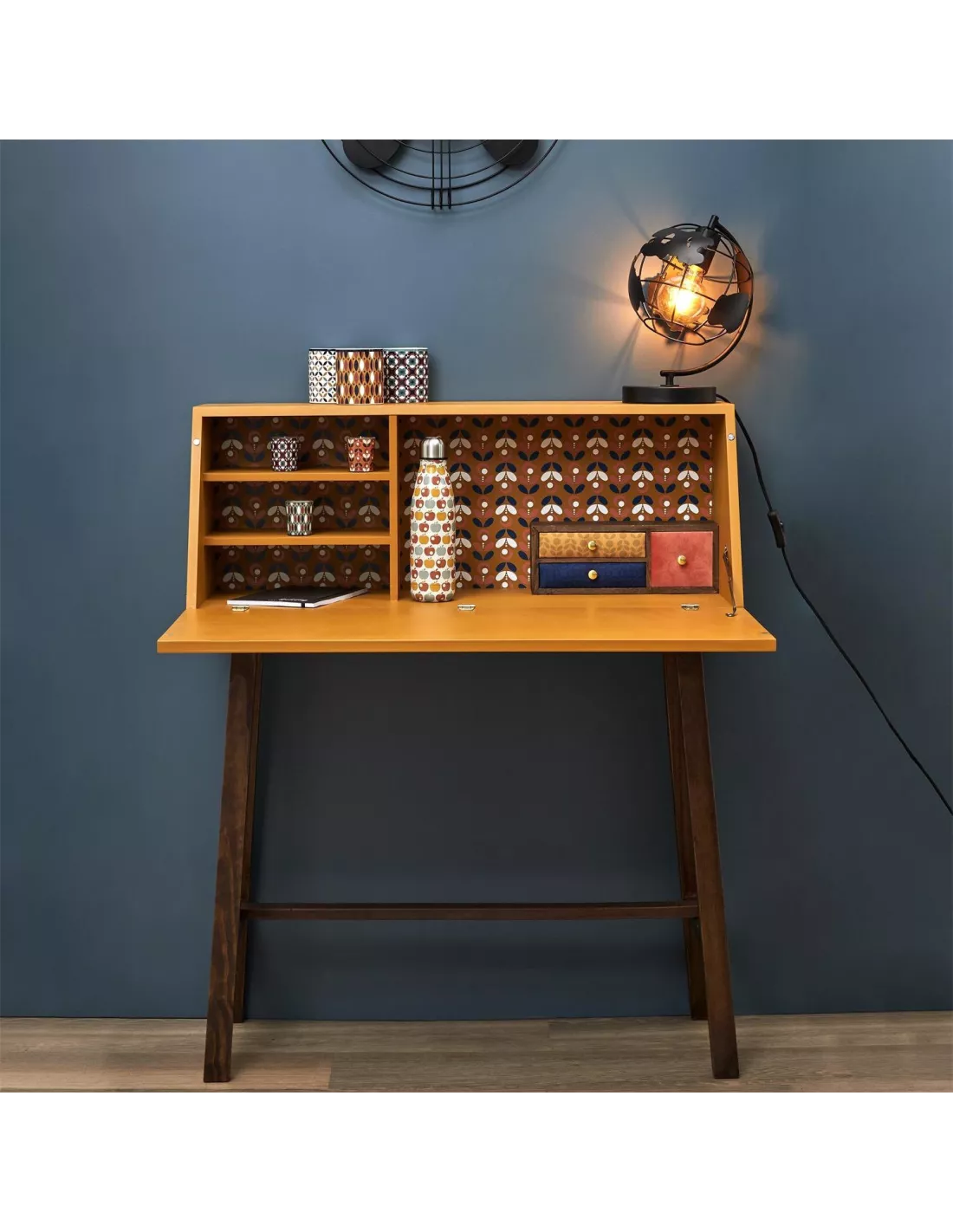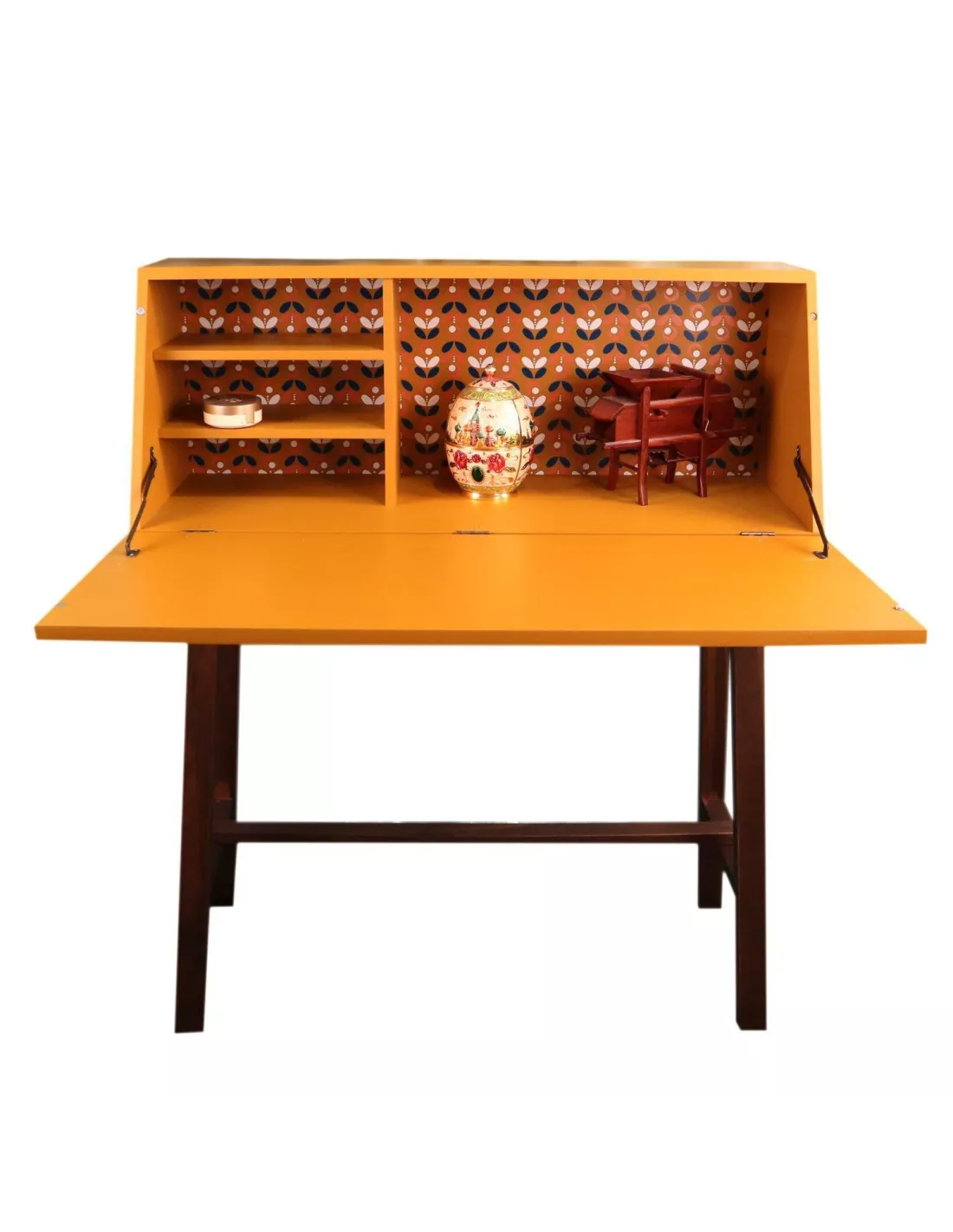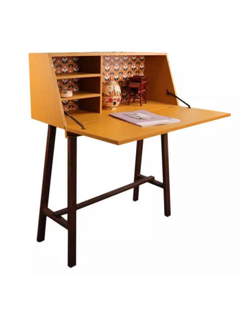 Dekoracyjne wnętrze sprawia, że sekretarzyk doskonale prezentuje się będąc otwartym.