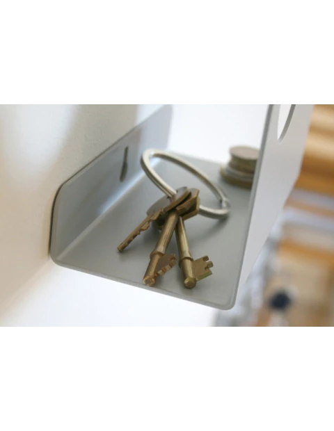 Wieszak ścienny Cani - swoją nazwę zawdzięcza nowoczesnemu designowi, który już na pierwszy rzut oka wydaje się być suwakiem błyskawicznym. Pomiędzy "zębami" znajduje się 5 wygodnych uchwytów, tworzących funkcjonalne haki na odzież, parasolki, klucze... a z tyłu ukryto praktyczny schowek - półeczkę, na którą swobodnie odłożysz klucze czy okulary. Kiedy akurat nic na nim nie wisi, wieszak daje wrażenie dzieła sztuki nowoczesnej, powieszonego na ścianie w charakterze ozdoby, a dzięki temu, że nie przylega do niej bezpośrednio - daje wrażenie trójwymiarowości. Design spotyka się tutaj ze sztuką użytkową, dając Ci ciekawą opcję wystroju wnętrza.
