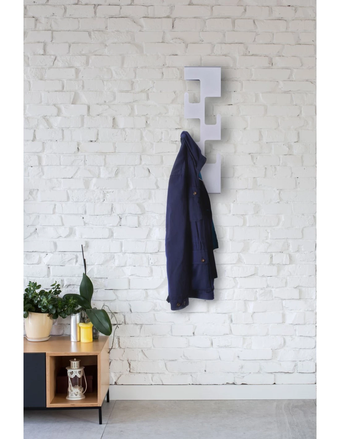 Wieszak ścienny Zip - swoją nazwę zawdzięcza nowoczesnemu designowi, który już na pierwszy rzut oka wydaje się być suwakiem błyskawicznym. Pomiędzy "zębami" znajduje się 5 wygodnych uchwytów, tworzących funkcjonalne haki na odzież, parasolki, klucze... Kiedy akurat nic na nim nie wisi, wieszak daje wrażenie dzieła sztuki nowoczesnej, powieszonego na ścianie w charakterze ozdoby. Dzięki temu, że wieszak nie przylega bezpośrednio do ściany - daje wrażenie trójwymiarowości. Design spotyka się tutaj ze sztuką użytkową, dając Ci ciekawą opcję wystroju wnętrza.