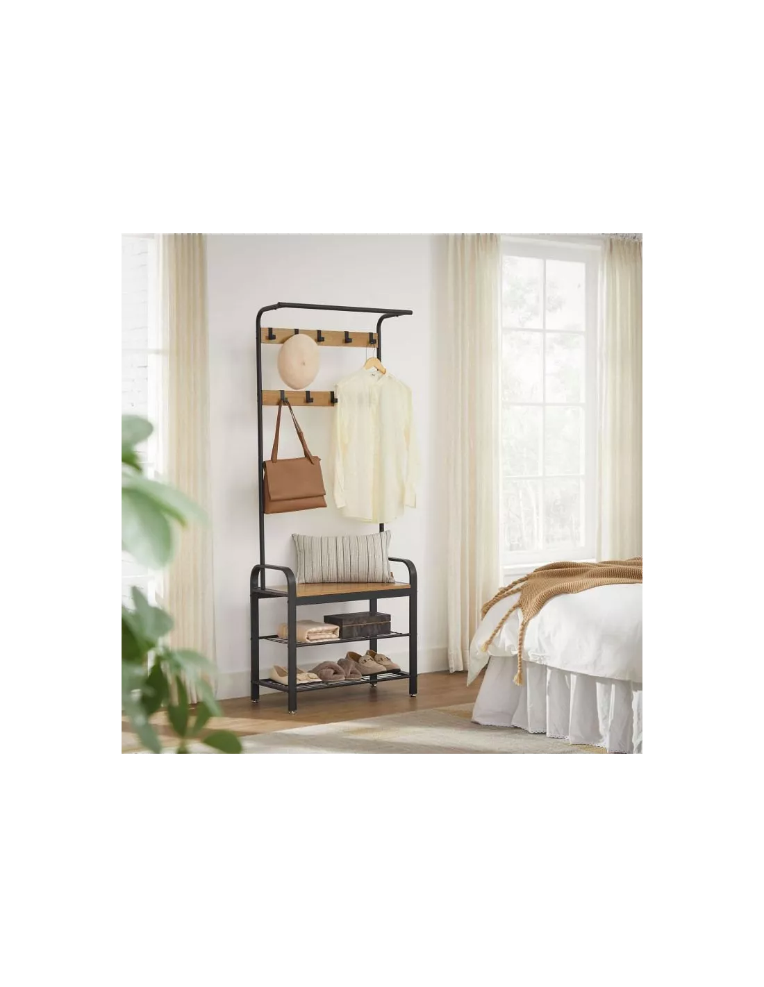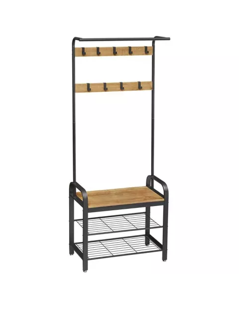 WIESZAK STOJĄCY GARDEROBA DREWNO + WIESZAKI METALOWE DĄB RUSTYKALNY GH