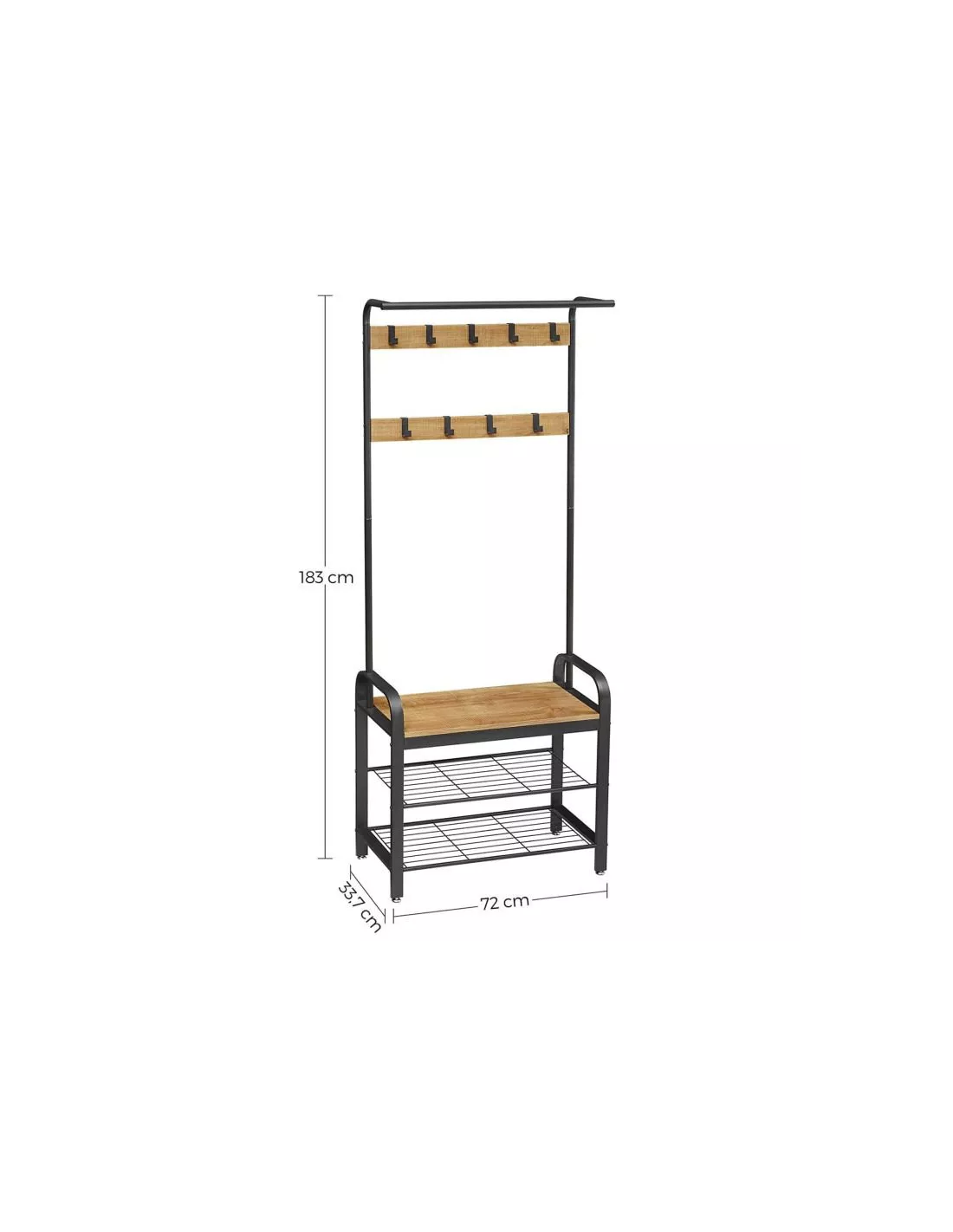 Wieszak stojący na ubrania to propozycja dla miłośników minimalistycznych wnętrz i industrialnego klimatu. Mebel pozwala na uzyskanie bardzo modnego i jednocześnie klasycznego wieszaka - mini garderoby. Ten wieszak to garderoba, która umożliwi Ci nieograniczony dostęp do odzieży w dowolnej chwili. Posiada dwa rzędy wieszaków na ubrania: kurtki, płaszcze, marynarki. Dodatkowo, mebel wyposażony jest w 2 metalowe półki na obuwie czy pudełka i siedzisko w pięknym wybarwieniu. Metalowy poprzeczny drążek umożliwi odwieszanie wieszaków. Tak wiele rozwiązań w jednym tylko meblu!