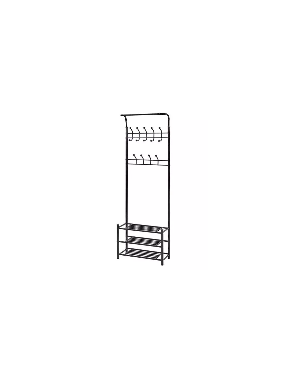 Garderoba posiada dwa rzędy wieszaków na ubrania: kurtki, płaszcze, marynarki. Dodatkowo, mebel wyposażony jest w 3 półki na obuwie czy pudełka. Całość konstrukcji posiada solidną i dobrze dopasowaną podstawę. Gwarancja solidności i stabilności - mebel wykonany został ze stali malowanej proszkowo. Utrzymanie w minimalistycznym stylu sprawia, że idealnie pasuje do każdego pomieszczenia. To rozwiązanie zarówno do sypialni, jak i garderoby czy przedpokoju.