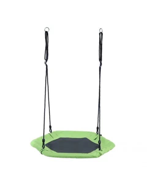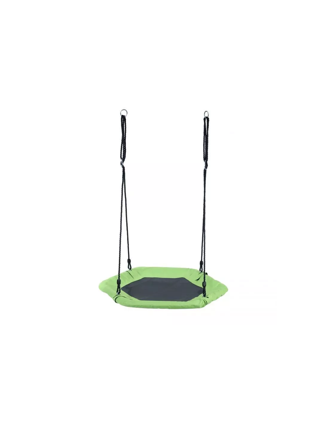Huśtawka ogrodowa Bocianie Gniazdo to idealne rozwiązanie dla wszystkich dzieci lubiących zabawę w ogrodzie. Oparta na klasycznej wahadłowej konstrukcji zapewnia moc wrażeń. Na siedzisku o średnicy 92 m zmieści się jednocześnie kilkoro dzieci! Huśtawka jest w stu procentach bezpieczna. Posiada zaokrąglone, gładkie powierzchnie, materiał siedziska to wytrzymały i trwały poliester. Solidne mocowania i grube nylonowe linki są w stanie wytrzymać bardzo duże obciążenie. Stelaż tworzy stalowy okrąg, do którego solidnie przymocowane jest siedzisko. Bocianie gniazdo zawieszone na nylonowych linach z przeplecioną metalową ósemką służącą regulacji wysokości, całość zwieńczonych dwoma metalowymi pierścieniami, dzięki czemu huśtawkę można zamontować w dwójnasób – jedno lub dwupunktowo. Bardzo łatwy i szybki montaż oraz demontaż. Huśtawka nadaje się zarówno do użytku wewnątrz jak i na zewnątrz, bajkowe kolory z pewnością przypadną go gustu zarówno dziewczynkom jak i chłopcom.