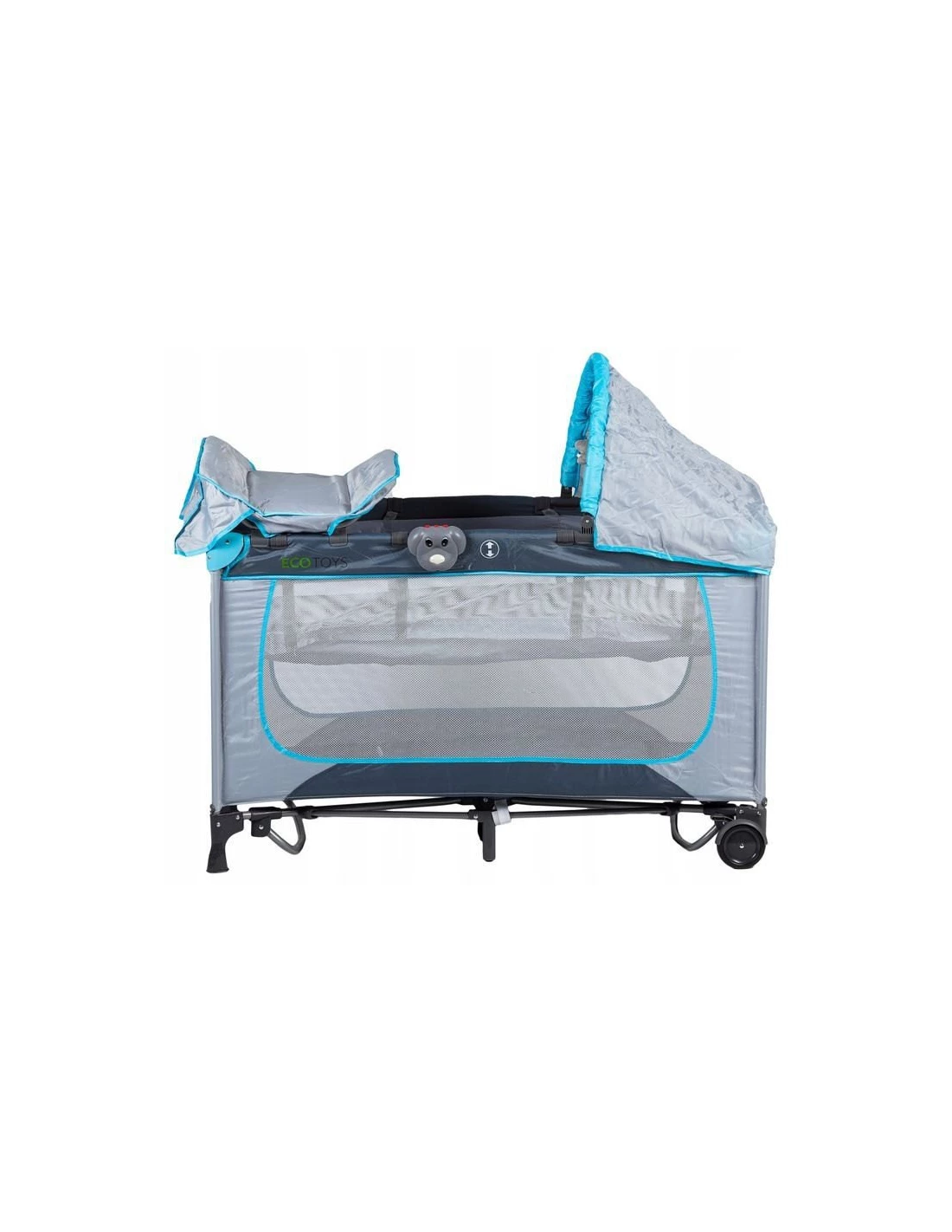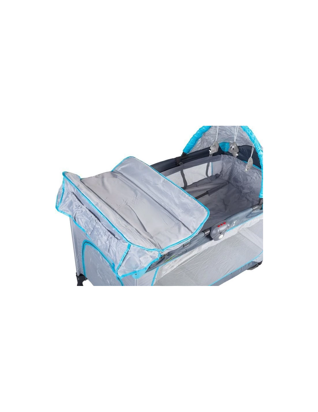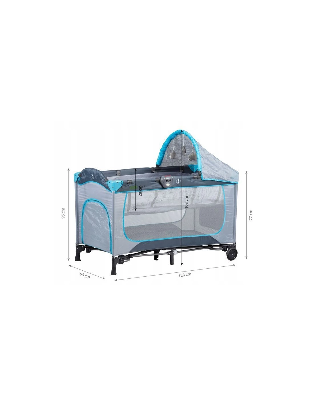 - w zestawie: przewijak, grający piesek, 3 zabawki, moskitiera, baldachim, przybornik, pokrowiec