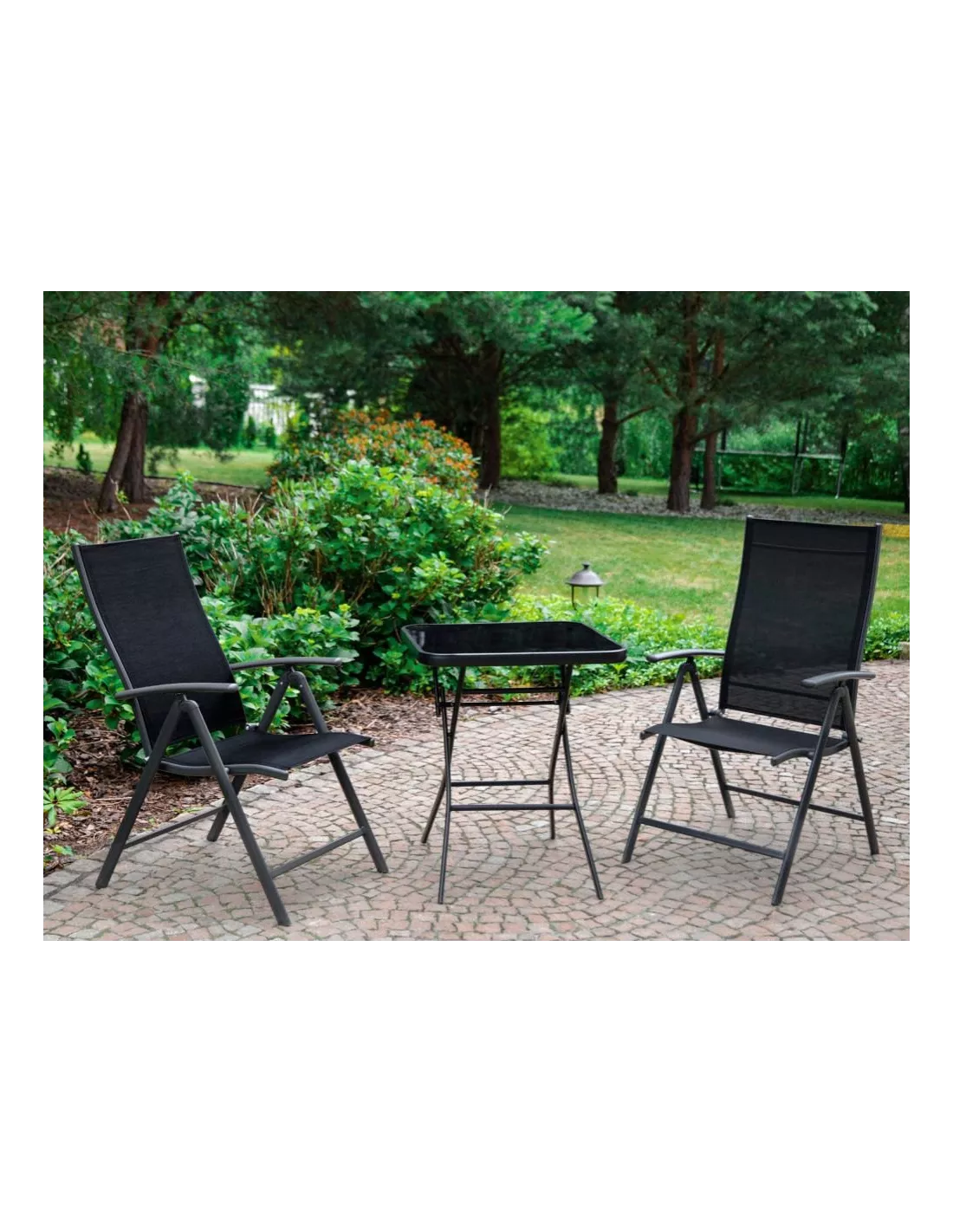 Warto, by meble, których używać będziemy na zewnątrz gwarantowały nam wygodę i były ergonomiczne. Ten zestaw to krzesła, które bez problemu, szybko i wygodnie złożysz i rozłożysz oraz funkcjonalny stolik kawowy z hartowanym blatem. Krzeseł możesz używać także jako leżaków - dzięki, aż 7 stopniowej regulacji wysokości oparcia. Łatwe i wygodne w transporcie - w razie potrzeby szybko przeniesiesz je np. z tarasu do ogrodu. Na nogach krzeseł zamontowano specjalne stopki, które nie tylko chronią podłoże przed porysowaniem ale stanowią także antypoślizgowe zabezpieczenie w sytuacji mokrego (np. w efekcie opadów) podłoża. Na ich funkcjonalność pływa także ciemny kolor, który jest uniwersalny i sprawdzi się w wielu aranżacjach. Idealnie pasuje do nich stolik o czarnej podstawie i czarnym blacie z hartowanego szkła w formie kwadratu.