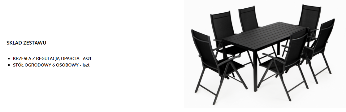 ZESTAW MEBLI OGRODOWYCH STÓŁ Z KRZESŁAMI 6 SZT CZARNY GARDENIIA