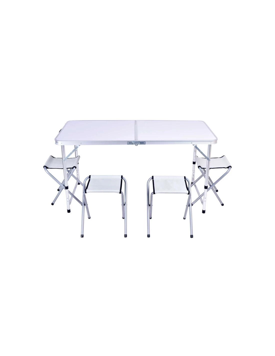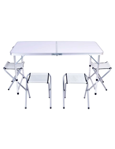 Jeśli planujesz wyjazd na kemping, organizujesz przyjęcia plenerowe lub często podróżujesz - zestaw turystyczny Trip jest właśnie dla Ciebie! Wykonany z dobrych jakościowo i lekkich materiałów (7 kg) jest łatwy do przenoszenia i trwały. Stół i krzesła składają się w walizkę, która dodatkowo ułatwia jego transport. Duży blat stołu 120x60 cm z płyty MDF wspiera się na aluminiowo-stalowej konstrukcji, którą w razie potrzeby sprawnie złożysz i rozłożysz. Stół jest przy tym stabilny, posiada zabezpieczenia przed nieoczekiwanym złożeniem. Z powodzeniem pomieści przy swoim blacie min. 6 osób - dając okazję do wspólnego świętowania podczas wakacyjnych wyjazdów ale także w przydomowym ogrodzie.